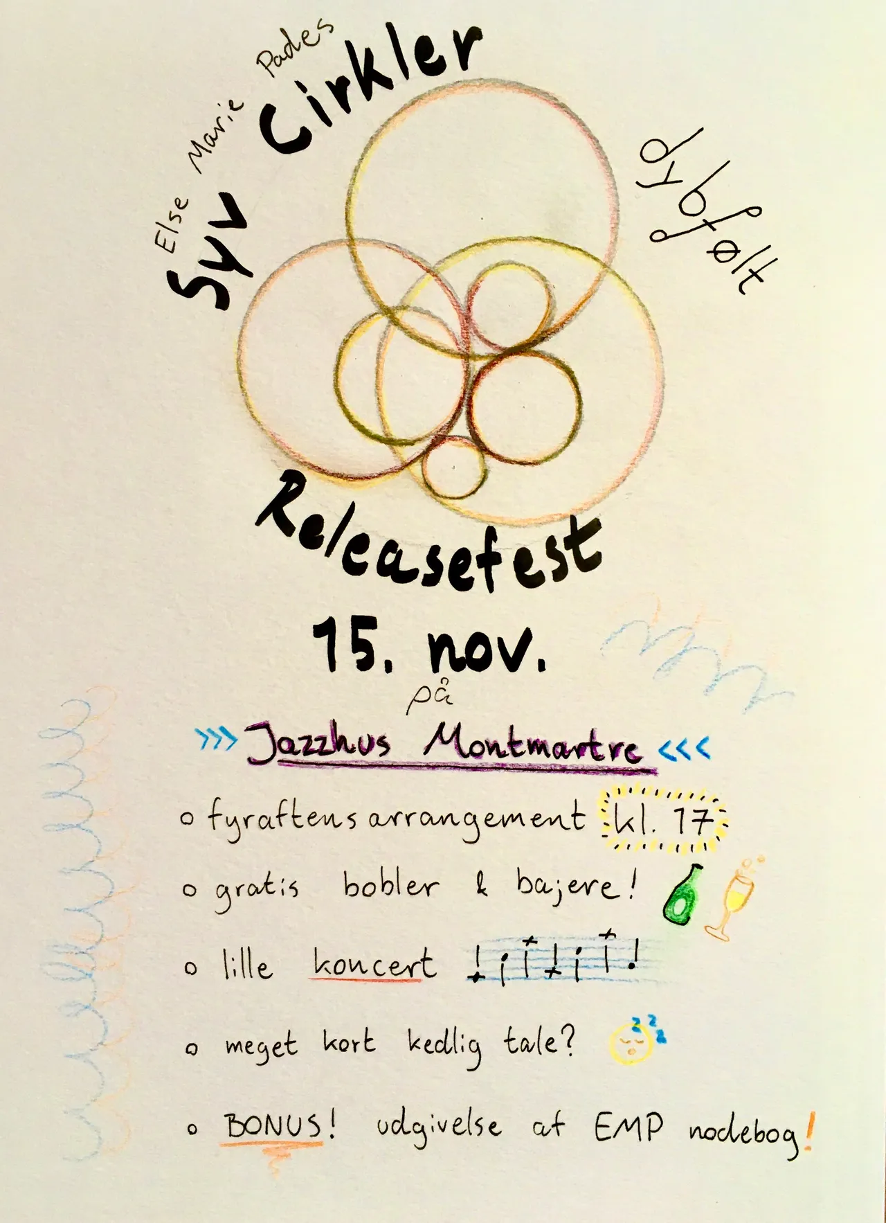 Imorgen udgiver vi vores udgave af Else Marie Pades 'Syv Cirkler'. Vi holder en lille udgivelsesfest på Jazzhus Montmartre kl. 17 – I er meget velkomne!